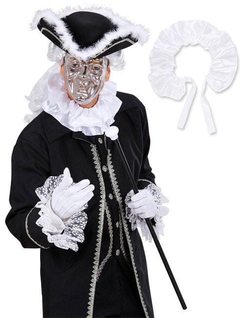 < Copyright by Widmann S.R.L.> Lieferumfang: 1 Barock Satin-Rüschen-Kragen weiss. Farbe: Weiß. Material: 100% Polyester. Kein Edelmann ließ sich im Barock ohne Rüschenkragen blicken! Das wäre ein modischer Fauxpas sondersgleichen gewesen. Damit Ihnen dies bei Ihrem Barock-Kostüm nicht passiert, haben wir hier den perfekten Rüschen-Kragen, der jedem Edelmann-Kostüm den letzten Schliff verpasst. Der Barock-Kragen kommt natürlich ganz in weiß und ist üppig gerüscht und lässt sich mit zwei Bindebändern in Sekundenschnelle befestigen. Da würde sich Casanova die Finger danach lecken! Auch genial für venezianische Kostüme! Achtung! Nicht für Kinder unter drei Jahren geeignet. Kann Kleinteile enthalten – Erstickungsgefahr.