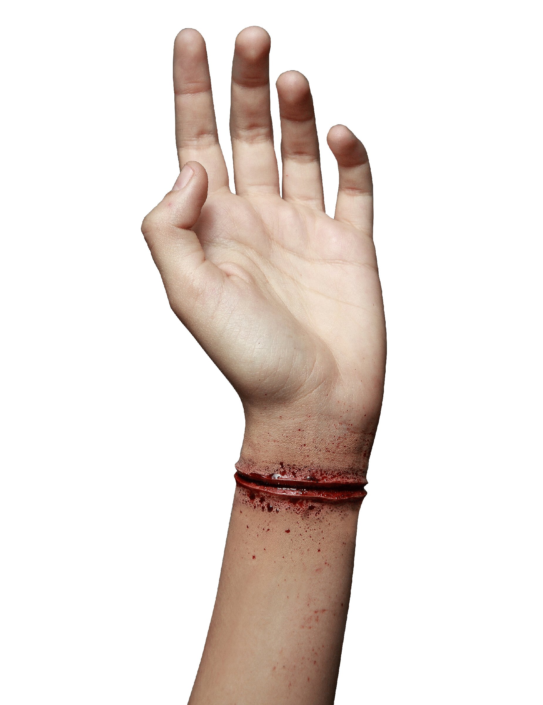 Der Atem wird Ihren Mitmenschen stocken, wenn Sie diesen tiefen Handgelenksschnitt an Ihrem Arm erspähen. Die rote Schnittwunde ist 11cm lang und 2cm breit und extrem realistisch gestaltet. Zur Befestigung können Sie zum Beispiel Latexkleber verwenden. Dieser ist nicht Bestandteil des Lieferumfangs, findet sich aber (ebenso wie ergänzendes Kunstblut) in unserem Sortiment.