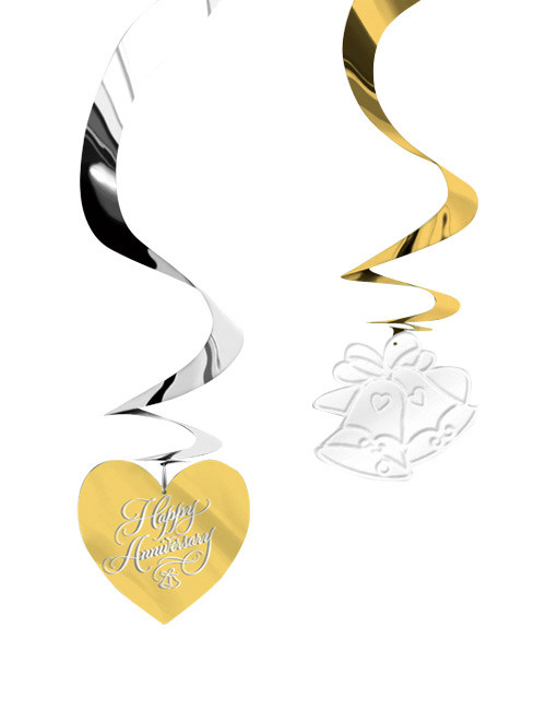 Hochzeitstag Jahrestag Happy Anniversary Hängedeko 5 Stück gold-silber 60cm