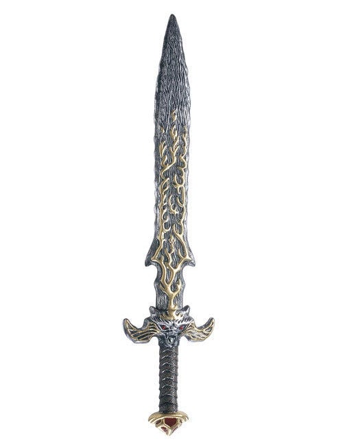 < Copyright by Widmann S.R.L.> Lieferumfang: 1 Mystisches Schwert. Farbe: grau/gold. Material: Kunststoff. Maße: ca. 86cm. Dieses eindrucksvolle Schwert komplettiert jedes Ihrer Halloween- oder Karnevalsoutfits, sofern es mit Rittern, Wikingern oder Fantasy-Gestalten zu tun hat. Es ist beeindruckende 86cm lang, auf der Klinge mit mystischen Flammen-Symbolen versehen und verfügt am Griff über eine grimmig grinsende Fratze. Am Ende des Griffs ist zudem ein roter Schmuckstein angebracht. Auch für Rollenspiele, LARP und Cosplay die perfekte Waffe! Achtung! Nicht für Kinder unter drei Jahren geeignet. Kann Kleinteile enthalten – Erstickungsgefahr.