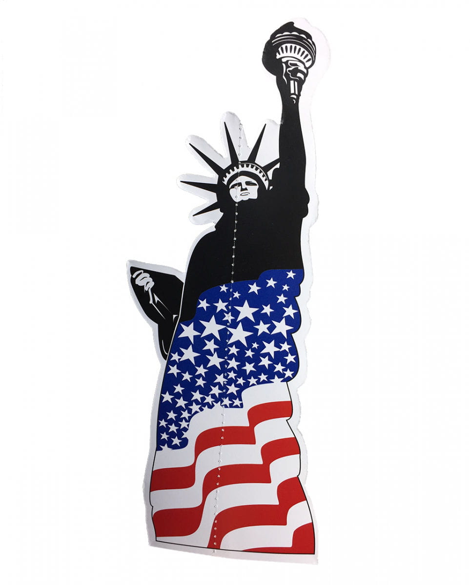 Freiheitsstatue Wimpel 39cm als Hänge-Deko Amerikanische Ikonographie zum Aufhängen Verziere deine amerikanisches Feier, dein Barbecue, dein Superbowl-Fest oder deine Wahlparty! Der Freiheitsstatue Wimpel 39cm als Hänge-Deko fügt sich gekonnt in deine patriotische Beflaggung und zeigt allen, welche demokratischen Werte du vertrittst! Der Freiheitsstatue Wimpel als Hänge-Deko weist eine Größe von ca. 39cm auf, inklusive Schnur zum Aufhängen ca. 109cm. Lady Liberty ist mit Zackenkrone und Leuchtfeuer stilisiert in schwarzer und weißer Farbe zu sehen, ihr Kleid wird durch eine amerikanische Fahne im Stars-and-Stripes-Muster gebildet. Für optimale Reißfestigkeit läuft die Schnur der US-Hängedeko durch den kompletten Wimpel. Lieferumfang: 1x Freiheitsstatue Wimpel 39cm als Hänge-Deko Inhalt: 1 Wimpel Farbe: schwarz/weiß/rot/blau Größe: ca. 39cm Material: Karton Nicht für Kinder unter 3 Jahren geeignet. Kann Kleinteile enthalten, die verschluckt werden können – Erstickungsgefahr.
